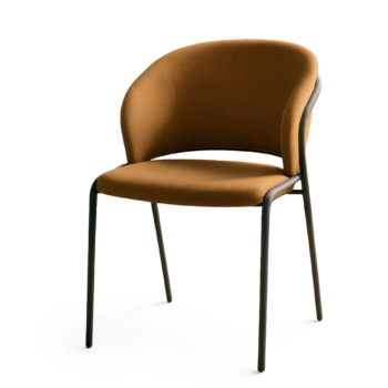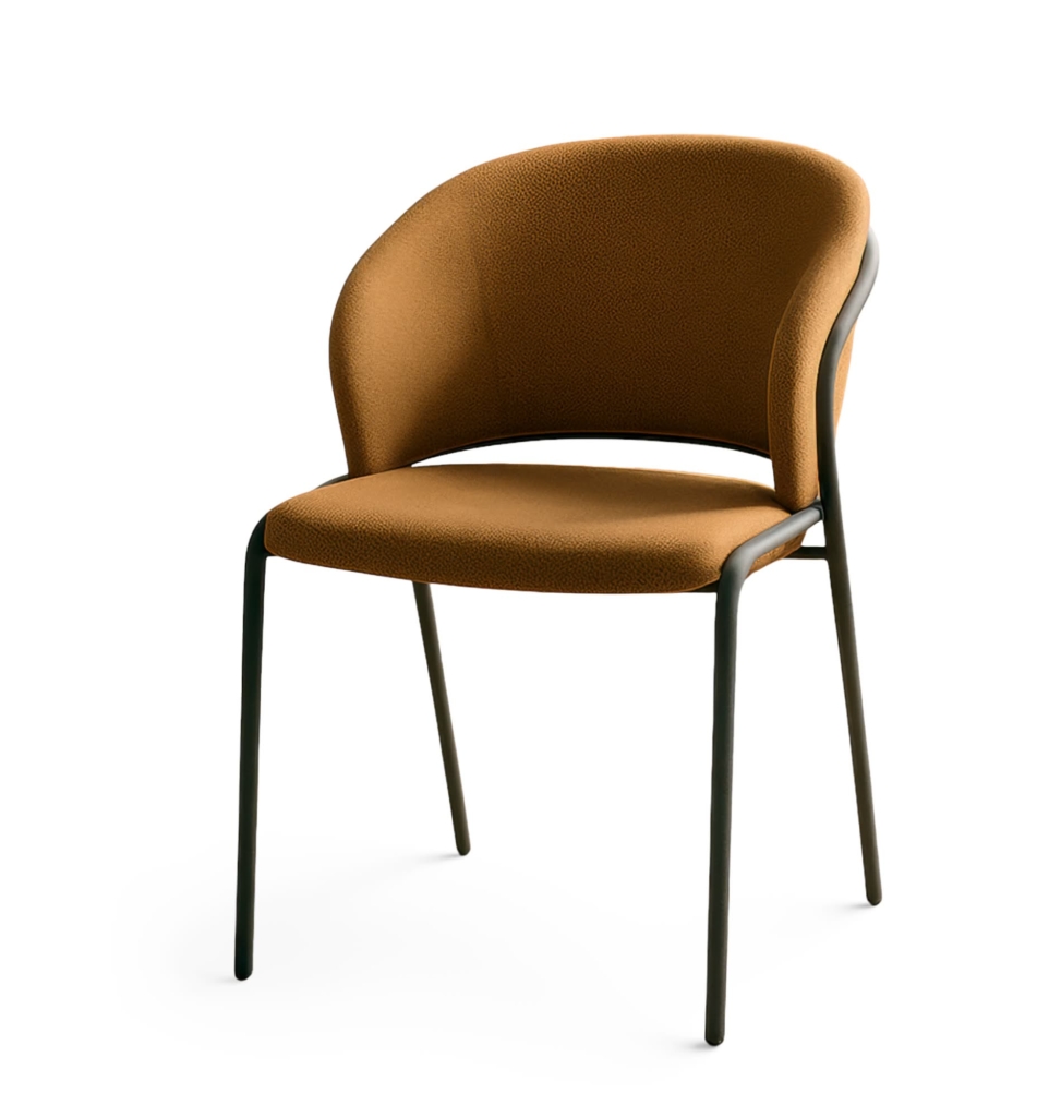 Ta konferenčni stol združuje čist, sodoben dizajn in vsakodnevno uporabnost. Zaobljen naslon se lepo nadaljuje v nežne bočne opore, zato stol deluje lahkotno, hkrati pa nudi občutek opore in udobja tudi pri daljših sestankih. Tapecirana školjka z mehkejšim sediščem in prijetno teksturo ustvari topel, profesionalen vtis, ki se odlično poda tako v sodobne pisarne kot konferenčne dvorane.
