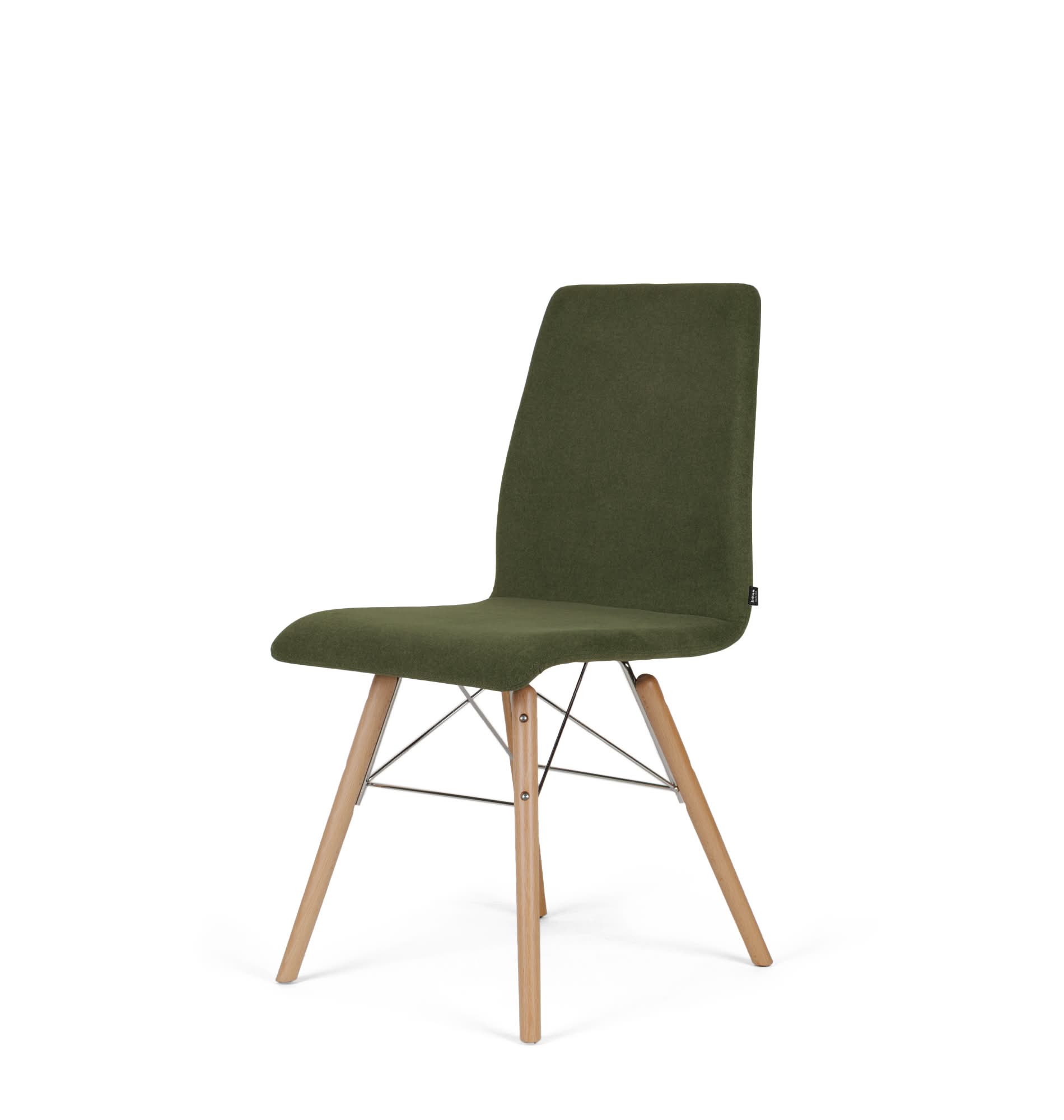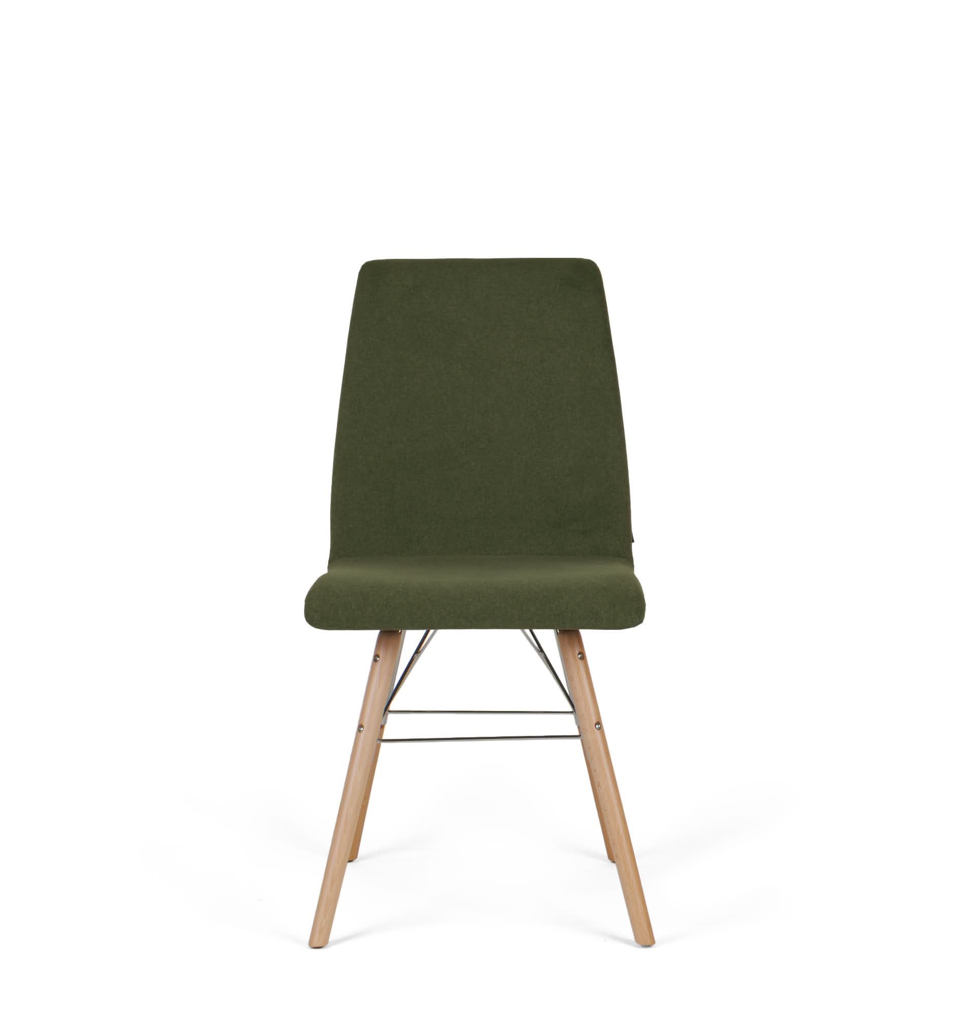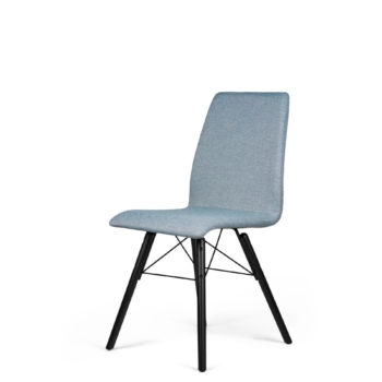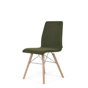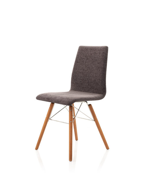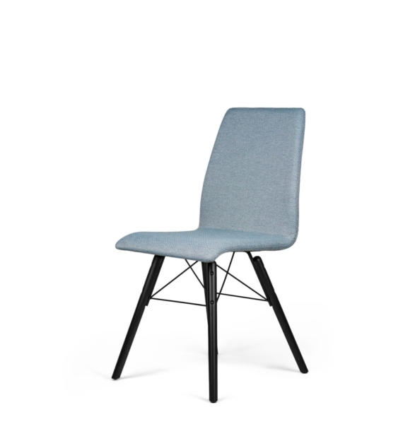 Teana FL: eleganca in funkcionalnost v enem. Noge stola so iz masivnega lesa, sedež in naslon pa sta iz enega dela (povezana) iz vezane plošče oblazinjeno s tkanino po vaši izbiri.