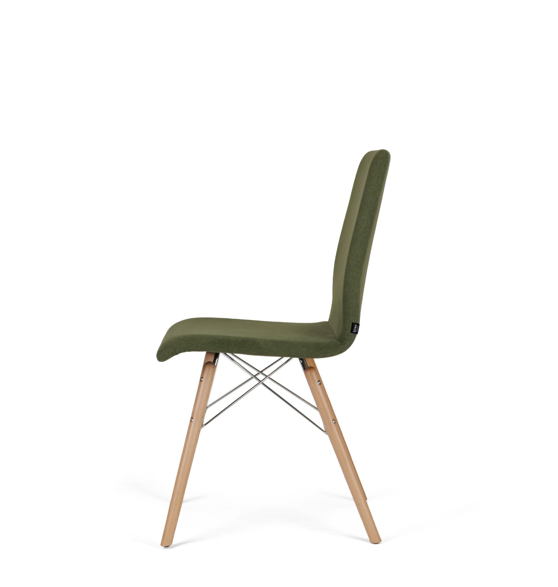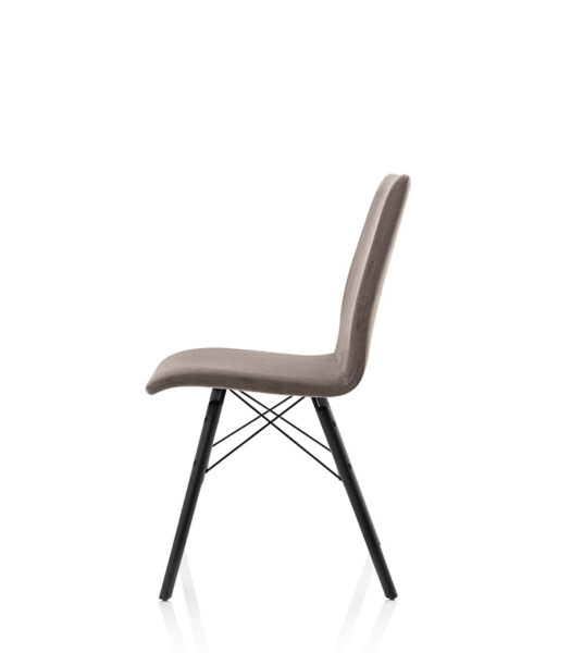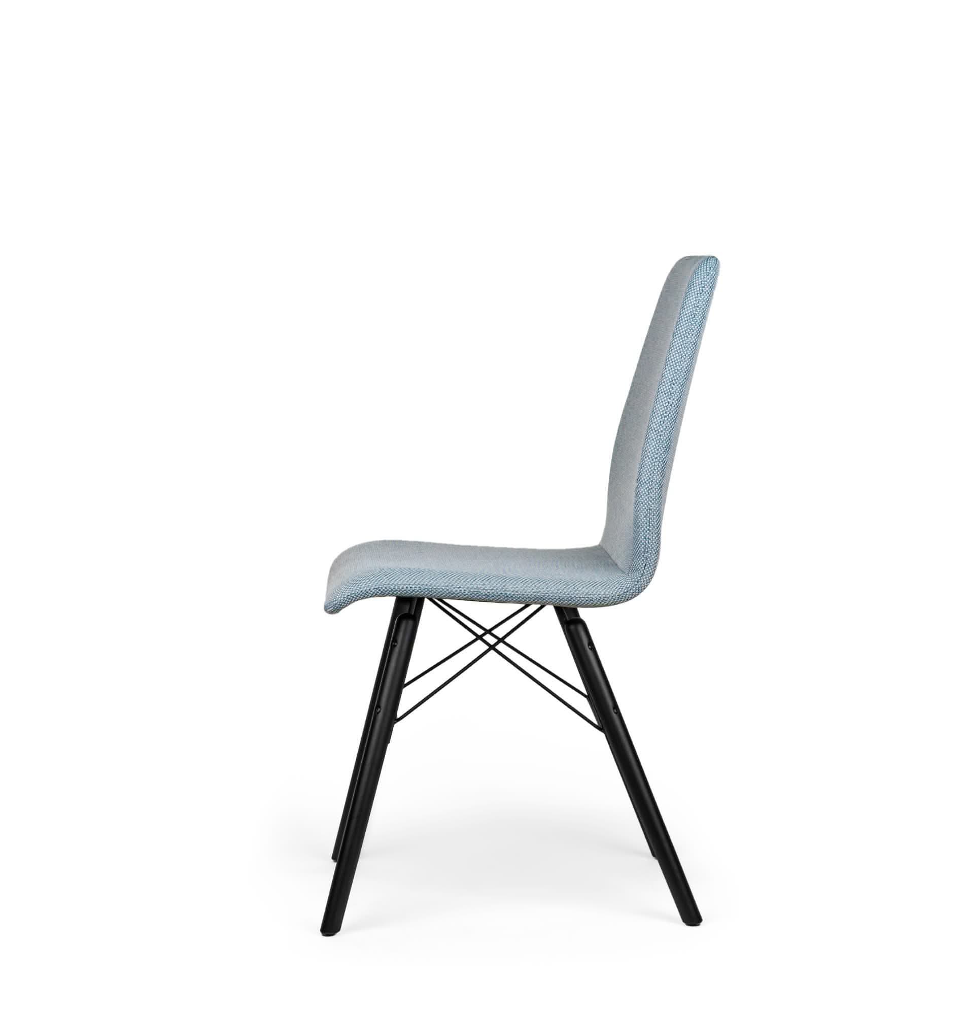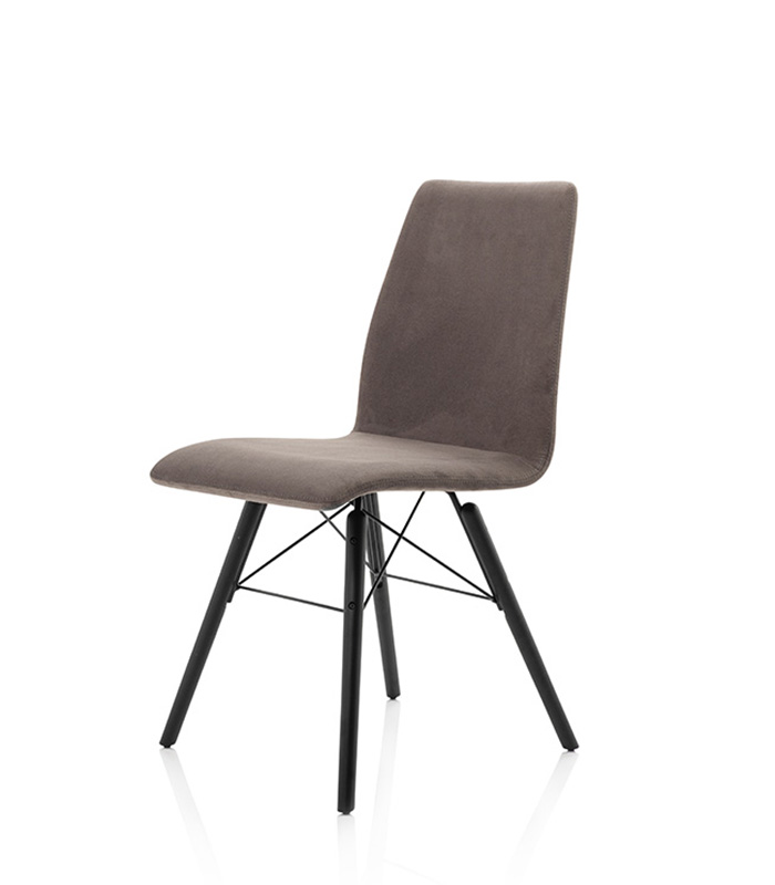 Teana FL: eleganca in funkcionalnost v enem. Noge stola so iz masivnega lesa, sedež in naslon pa sta iz enega dela (povezana) iz vezane plošče oblazinjeno s tkanino po vaši izbiri.