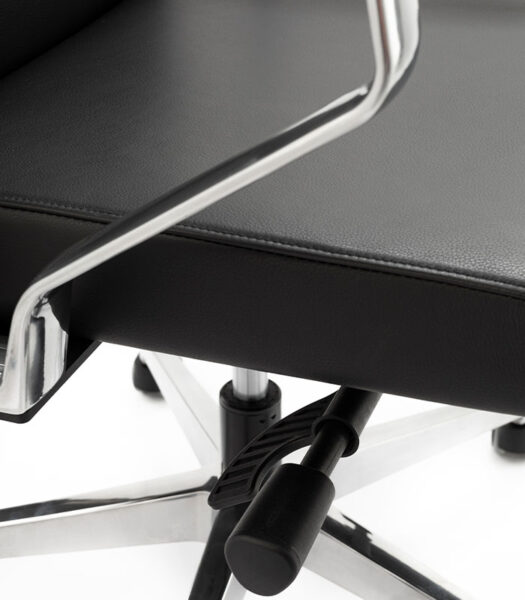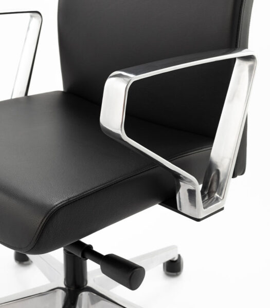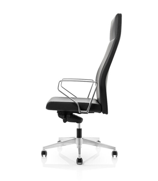 Direktorski stol Vip je eleganten stol, tapeciran v usnje, primeren za vodstvene in direktorske pisarne. Ergonomsko oblikovano sedišče in visok hrbtni naslon z dodatno podporo v ledvenem delu zagotavljata udobnejšo in stabilnejšo oporo hrbtenici pri vsakodnevnem sedenju.