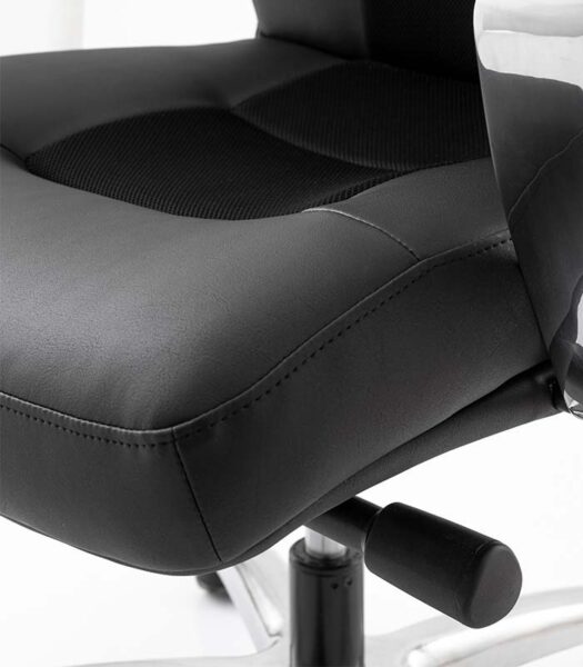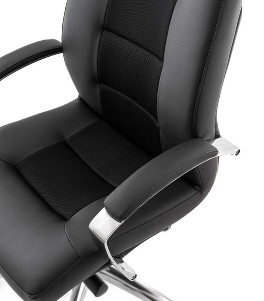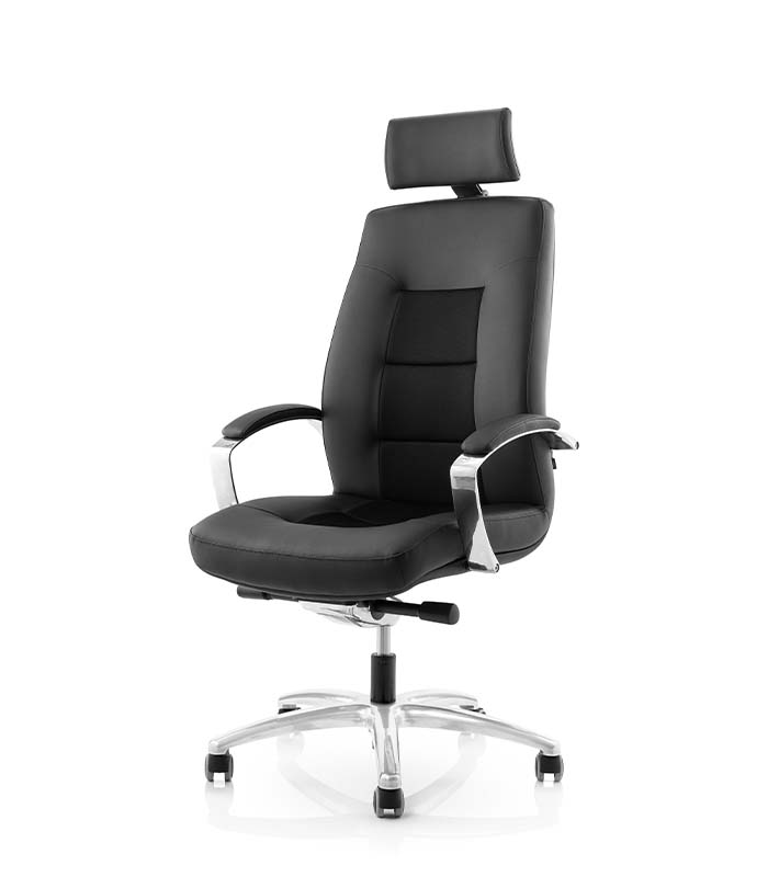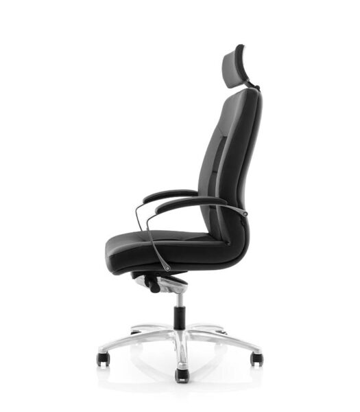 Za popolno podporo je direktorski stol opremljen s tapeciranim nastavljivim vzglavnikom. Zaradi kompaktne zasnove je primeren tudi za delovna mesta, kjer je potrebno celodnevno sedenje.